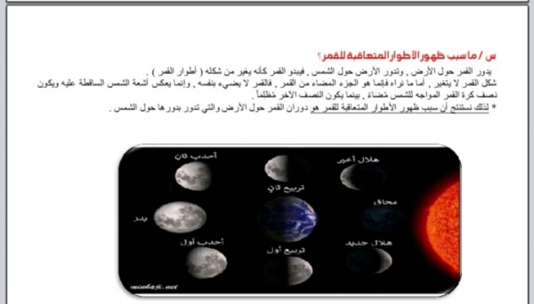 حل السؤال ما سبب ظهور الأطوار المتعاقبة للقمر