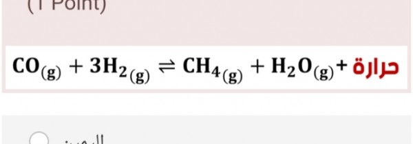 في التفاعل التالي عند زيادة الحرارة تتغير حالة الاتزان نحو .... ؟