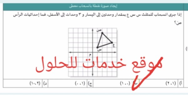 السؤال أذا جرى أنسحاب للمثلث س ص ع بمقدار وحدتين الى اليسار و ٣ وحدات الى الأسفل فما أحداثيات الرأس ص