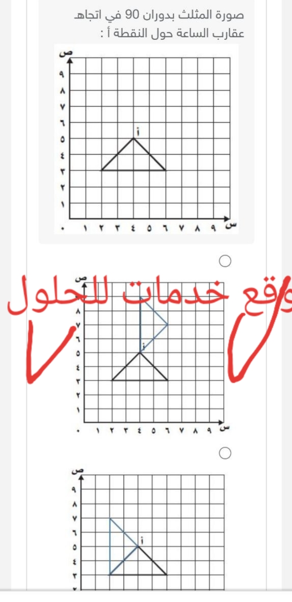 السؤال صورة المثلث بدوران 90 في أتجاة عقارب الساعة