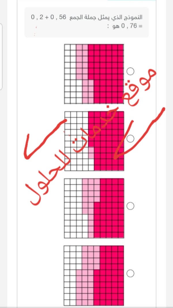 حل السؤال النموذج الذي يمثل جملة الجمع 0،56 +0،2 =0،76 هو
