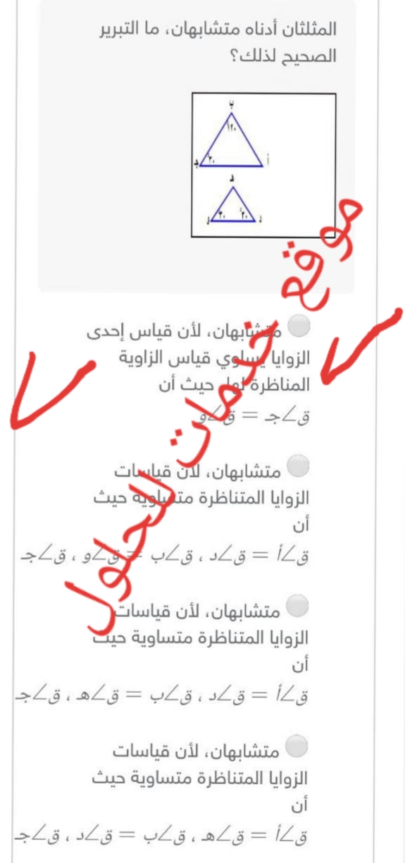 السؤال المثلثان أدناه متشابهان ما التبرير الصحيح لذالك