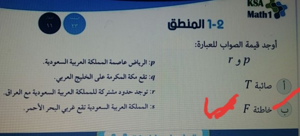 أوجد قيمة الصواب للعبارة p و r