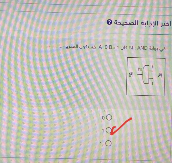 في بوابة AND : إذا كان A=0 B=1 فسيكون المخرج =