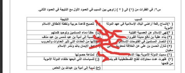 السؤال في الفقرات من (۱) الى ( ٧ ) زاوجي بين السبب في العمود الأول مع النتيجة في العمود الثاني