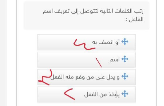 رتب الكلمات التالية لتتوصل إلى تعريف اسم الفاعل
