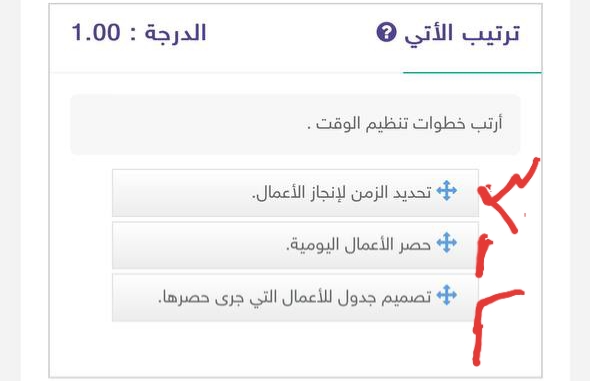 أرتب خطوات تنظيم الوقت .