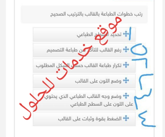 السؤال رتب خطوات الطباعة بالقالب بالترتيب الصحيح